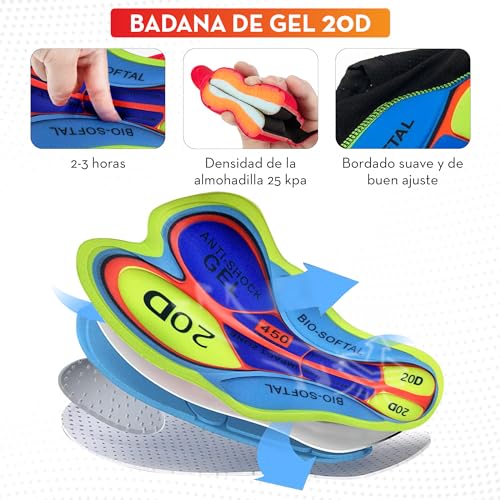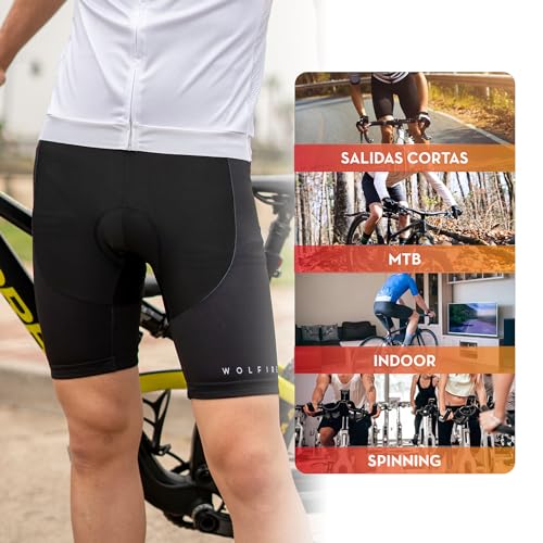 WOLFIRE WF Culotte Ciclismo Hombre Con Badana 20D Gel, Fabricado en Poliéster Para MTB y Carretera, Pantalón Corto