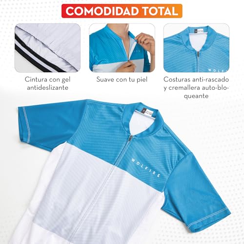 WOLFIRE WF - Maillot Ciclismo Hombre Manga Corta con Grip en Mangas y Cintura – Maillot de Bici de Poliéster - Ropa Ciclismo Hombre Camiseta Ciclismo Hombre