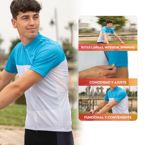 COMODIDAD Y AJUSTE PERFECTO - Experimenta la fusión definitiva de comodidad y ajuste con nuestro maillot ciclismo hombre verano, diseñado meticulosamente con una mezcla de poliéster y elastano. Este maillot promete una adaptabilidad y confort inigualables en cada salida.